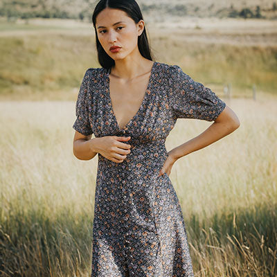 The Dunton dress is a beautiful and versatile piece that is perfect for any occasion. It is easy to wear and elegant, with a cross back that adds a subtle and quiet elevation. The dress also has a pin tucked waist that hugs you in, and a delicate little tie and chest that gives further accommodation to a range of sizes.